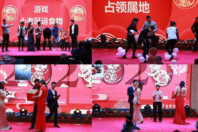 四、游戲、抽取獎(jiǎng)品環(huán)節(jié)展示。年會(huì)當(dāng)然少不了游戲、抽取大獎(jiǎng)環(huán)節(jié)了,精心安排的互動(dòng)游戲,大大地調(diào)動(dòng)了員工們的熱情,臺(tái)下一片歡聲笑語(yǔ),昔日的汗水都化為杯中的美酒,大家舉杯共飲。抽取大獎(jiǎng)是激動(dòng)人心的,看著拿大獎(jiǎng)的同事心中充滿了羨慕。